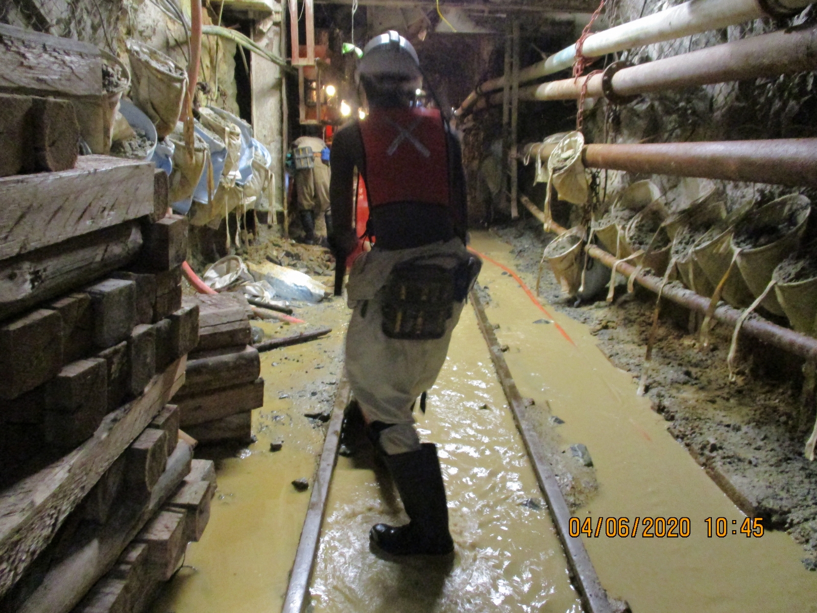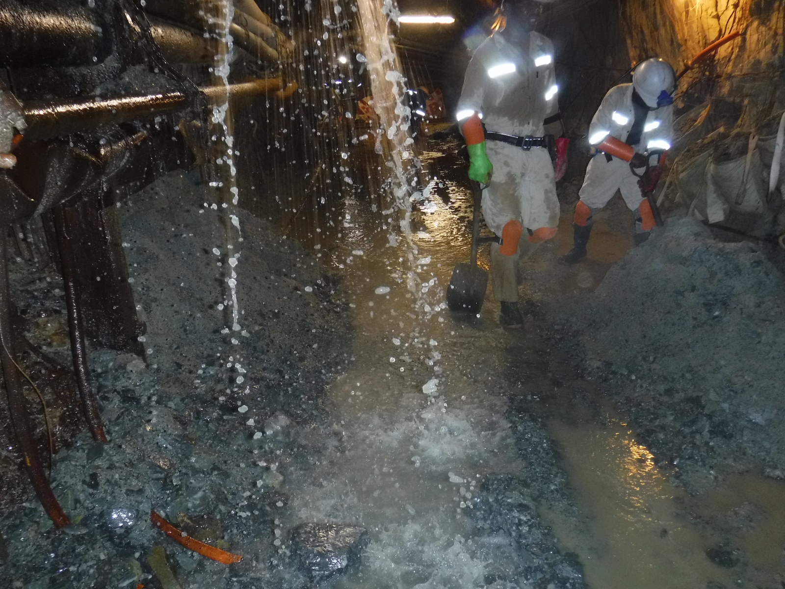 Our bestowed crews load mud in the haulages and cross cut sections, grade and re-align tracks, re-install drains, pumps piping and drain columns.